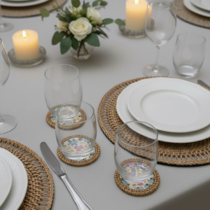 Vietnamese Handmade Round Mother of Pearl inlay Rattan Coasters, Heat-Resistant and Beautiful Colors